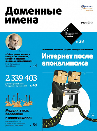 В номере: интервью с Петром Павловичем Паламарчуком, бессменным руководите проекта ХостОбзор, исследование о распространенности веб-технологий на сайтах в зоне .RU и за ее пределами в 2013 году, наблюдения за развитием DNSSEC (модная тема того времени), статьи о проблемах фильтрации и блокировании контента (кто тогда знал, чем это обернется?), перспективах домена SU, жизни и судьбе доменов-карликов, сложностях доменного творчества, а также интересные интервью и яркая инфографика.
